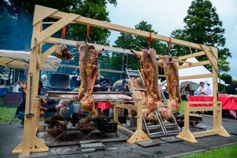 グランピング飲食チケット購入者を対象に、屋外にてBBQスタイルの食事を提供