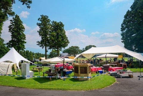 グランピング飲食チケット購入者を対象に、屋外にてBBQスタイルの食事を提供