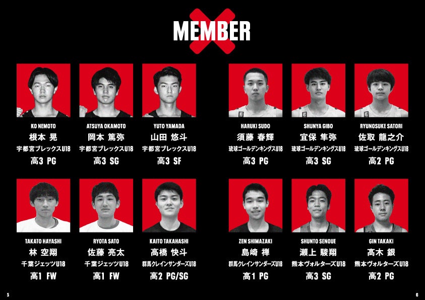 8月24日〜26日の期間、日本を代表するB.LEAGUEチームのユース選手12名を招待。