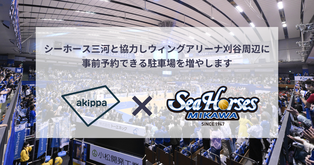 そして今回、akippaはシーホース三河とともに、ウィングアリーナ刈谷周辺の駐車場開拓に取り組むことが決定しました。地域住民の方や地元の企業さまにakippaサービスの周知をおこない、試合開催時や公園内でのイベント日に利用ができる駐車場を増やします。