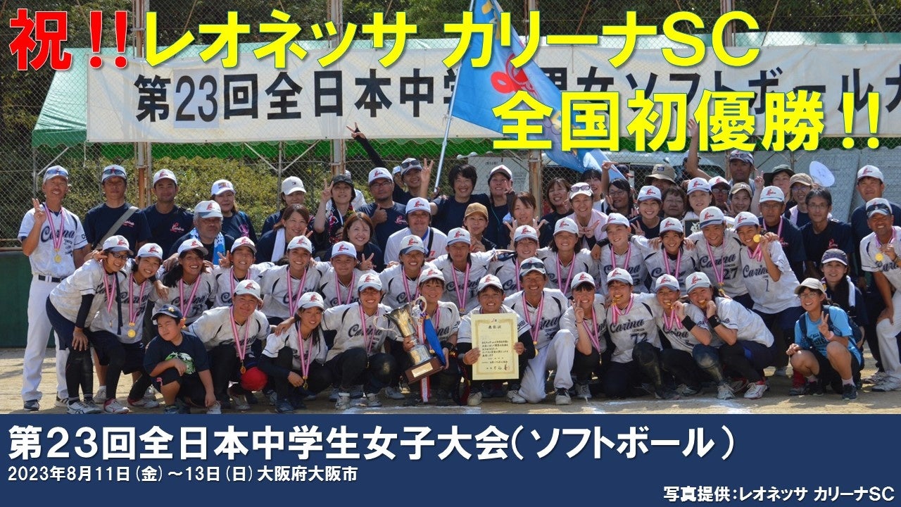 柏市を拠点に活動する中学生女子ソフトボールチームである「レオネッサカリーナSC」が、8月11日(金)から13日(日)にセレッソスポーツパーク舞州(大阪市)で行われた第23回全日本中学生女子大会(主催:公益財団法人日本ソフトボール協会)において、3年連続3回目の出場で見事初優勝を果たしました。