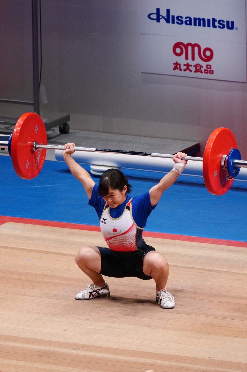 ※肩の高さまで持ち上げてから、その後肩から頭上まで上げる競技
