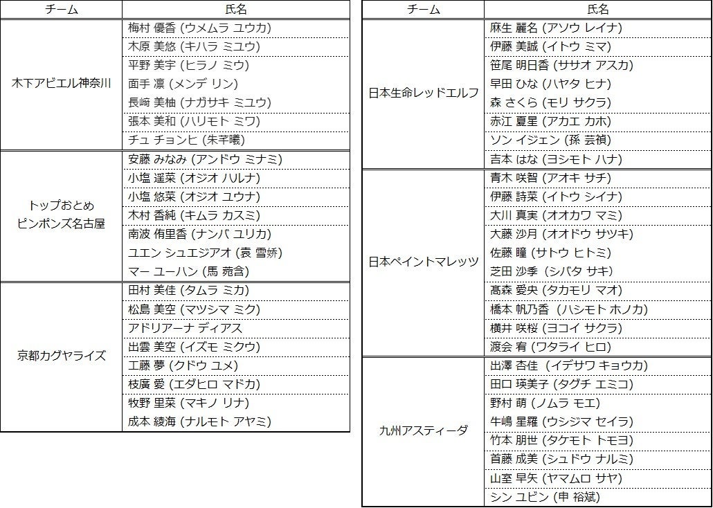 Tリーグでは、以下の通り、選手登録抹消、及び、選手契約が決まりましたのでお知らせいたします。