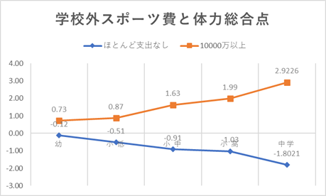 家庭の世帯収入と体力総合点、そして学校外で使える費用(学校外スポーツ費)と体力総合点は大きく関係性があると言われています(国立情報学研究所「子どもの体力・スポーツ格差に関する基礎的実証研究」より)。その結果、本人の本来持つ能力や可能性とは別の経済的要因で、子どもの可能性が損なわれている可能性があるのが実情です。