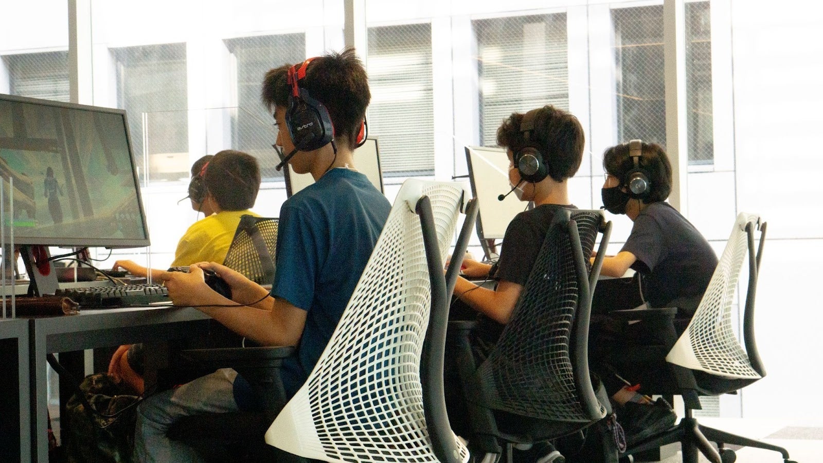 3日目は、”プロゲーマーへの道”と題した課題解決型のプログラムを実施。午前中は、グループに分かれて、Fortniteについての研究テーマを選び、グループごとに分担しながら調べ物をし、最後は全員の前で発表をしてもらいました。それぞれのグループが気になったテーマを選び、自分たちの調べたことをまとめて発表する姿は、まさに夏休みの自由研究のようでした。