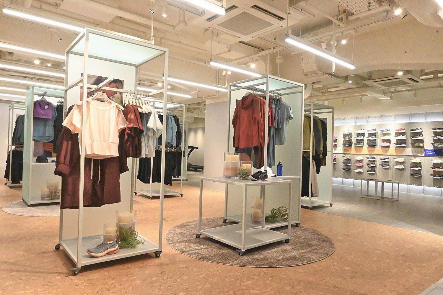 当ストアは、ランニングスポットとしてオフィスワーカーや観光客にも人気の東京・丸の内の三菱ビル地下1階に位置し、皇居にも気軽に走りに行くことができる好立地で、店舗面積は約500平方メートルです。ランナーにやすらぎや新たなインスピレーションが得られるような、中性的でやわらかな雰囲気のデザインにしています。