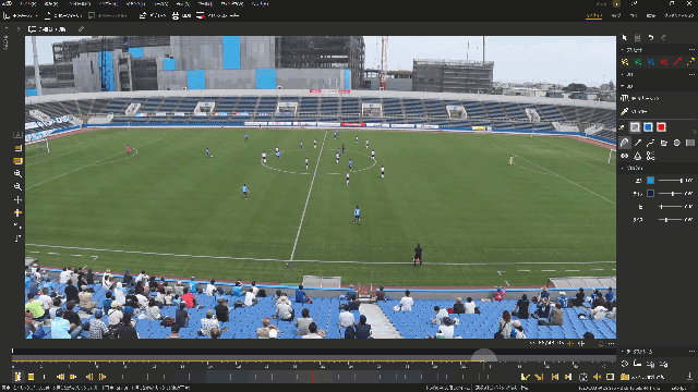 Dartfish 2024では、クロマキー機能を選択するとソフトウェアが自動でフィールドカラーを認識してクロマキー処理を行います。また、さらに1色を追加で選択することができ(計2色でクロマキー処理)、より精度の高いクロマキー処理を行う事ができます。もちろん選択されている2色は自由に変更可能です。