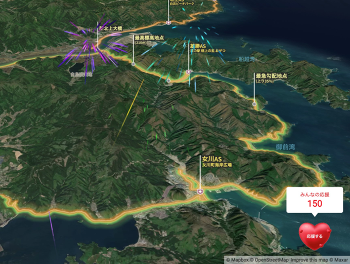 ①『ツール・ド・東北 2023 オフィシャル企画 リアルタイムマップ東北応援企画 powered by Mapbox』で、新しいスポーツ応援を体験!