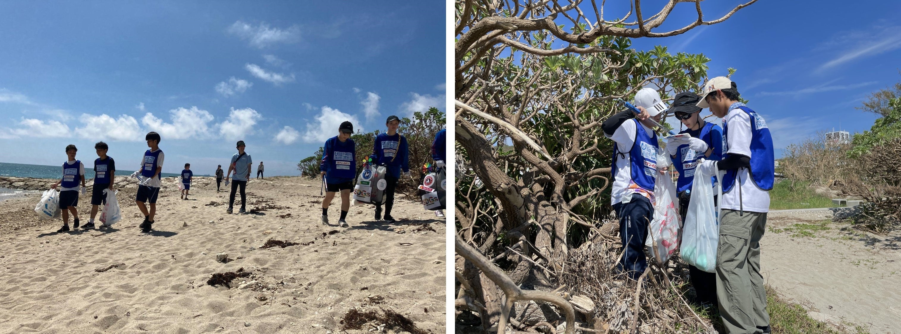 青い海と広い砂浜が特徴の中城モール裏ビーチ。マーメイドの石像がシンボルとして有名なビーチですが、沖縄県の東海岸にも関わらず漂着ごみ等も多い地域です。8月5日に行われるはずだった大会が台風6号直撃で延期となり、その爪痕残る状況でのごみ拾い。砂浜はもちろん、海岸に面する木々の間にもごみは散乱していました。そんな様子を見た参加者の1人から「沖縄は海に囲まれているからごみは沖縄県全体で考えたらこんなものじゃないんですよね?」と質問がありました。沖縄本島北部や離島はボランティアも少なく、高齢者も多いので拾い切れていない現実を伝えると思い悩んでいる様子でした。実際ごみを拾ってみて総量の多さ、種類の多さ、範囲の広さを実感したようで、その場での答えは出ませんでしたが、この質問をしてくれた高校生のように自分たちの身近にある海で現実に起きていることを認識してもらうこと、それを周りにも広めることで海洋ごみ問題に対して貢献していきたいと強く思いました。