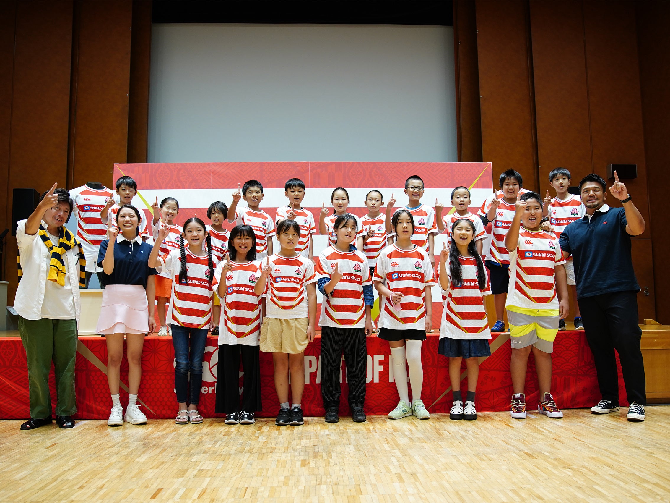 株式会社ゴールドウイン(本社:東京都渋谷区/代表取締役社長:渡辺貴生)は、2023年8月25日(金)に都内で「ラグビーから学ぶサステナブル 一緒にラグビー日本代表を応援しよう」を開催。事前の抽選で選ばれた小学3年生から6年生の男女20名の参加者に、ファンからポリエステル製のウエアを回収しリサイクルした再生ポリエステル繊維を使用した、ラグビー日本代表のサステナブルを意識したジャージーの開発ストーリーなどを話しました。