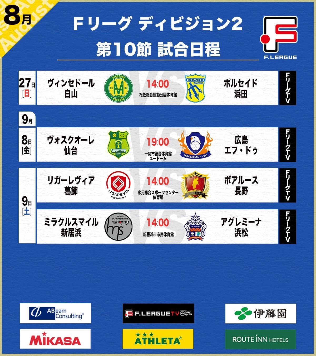 8月27日(日)14:00キックオフ ヴィンセドール白山 vs. ポルセイド浜田