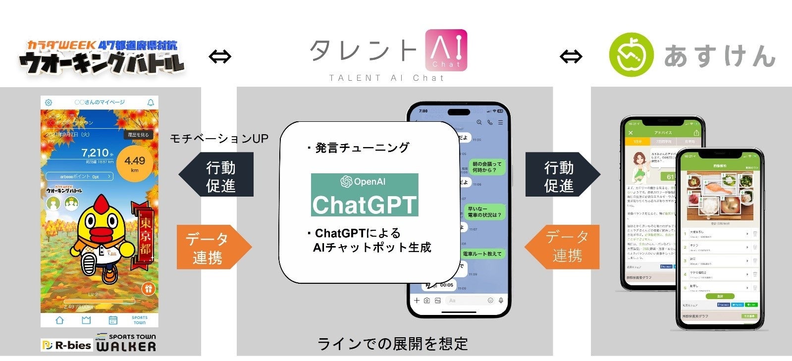 タレントAI Chat×あすけん×ウオーキングバトル