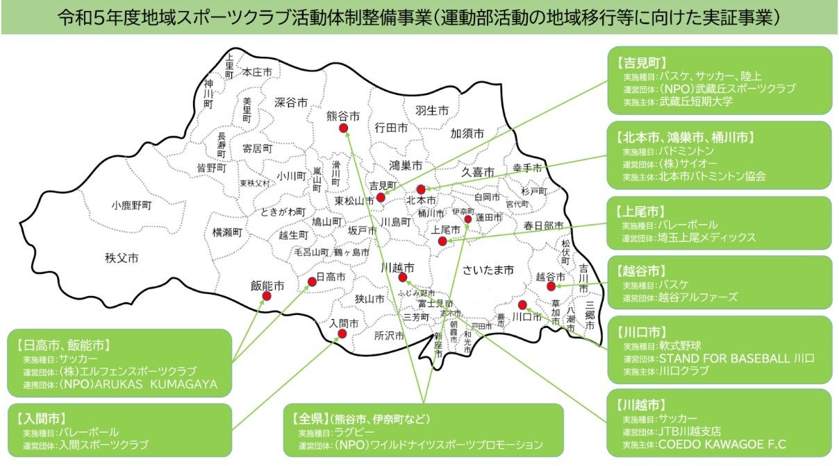 「令和5年度 埼玉県新たな地域クラブ活動実証事業の公募」: https://www.pref.saitama.lg.jp/a0312/news/page/news20230721.html
