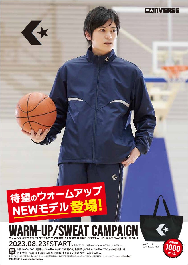 ゼット株式会社(本社/⼤阪市天王寺区、代表取締役社⻑/渡辺裕之)の製造部⾨を請け負うグループ会社のゼットクリエイト株式会社(本社/⼤阪市天王寺区、代表取締役社⻑/和⽥耕⼀)が、コンバースブランドのバスケットボールウェア・バッグのライセンシーとして、「コンバース ウォームアップ/スウェット キャンペーン」を2023年8月23日よりスタートしました。