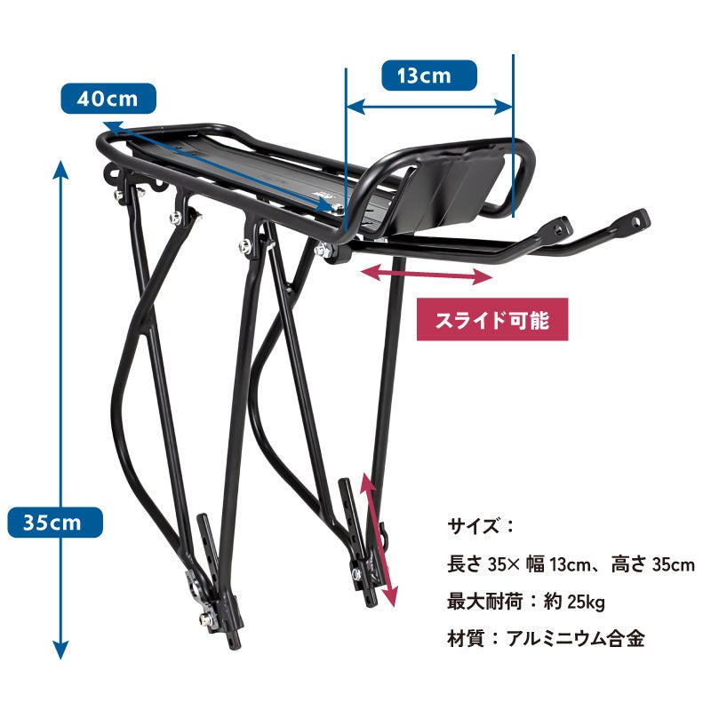 最大耐荷重約25kg!重い荷物を積むことが可能。自転車通勤や自転車通学に最適です。
