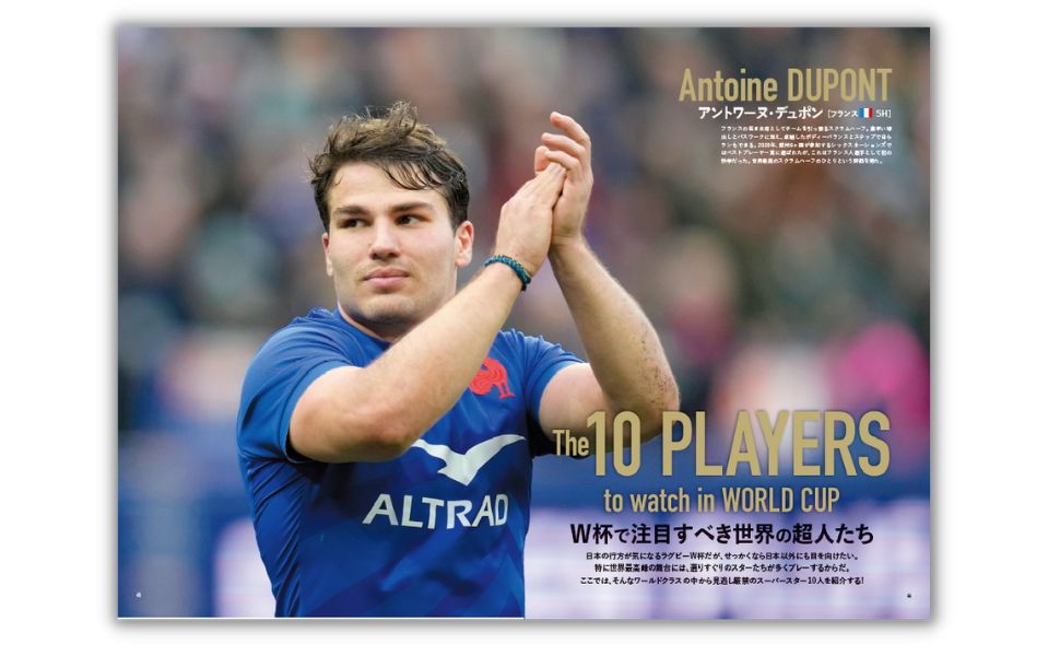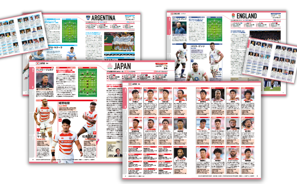POOL A~Dに分けて、試合日程、出場全20チームの特性や注目選手を紹介。ワールドラグビーランキング、最高成績、チーム愛称も掲載しているので、観戦に役立ちます。日本が出場するPOOL Dも充実解説。選手名鑑には、最終的なW杯メンバー候補33人を掲載しています。また、特に世界最高峰の舞台では、選りすぐりのスターたちが多くプレーします。そんなワールドクラスの中から見逃し厳禁のスーパースター10人も紹介!
