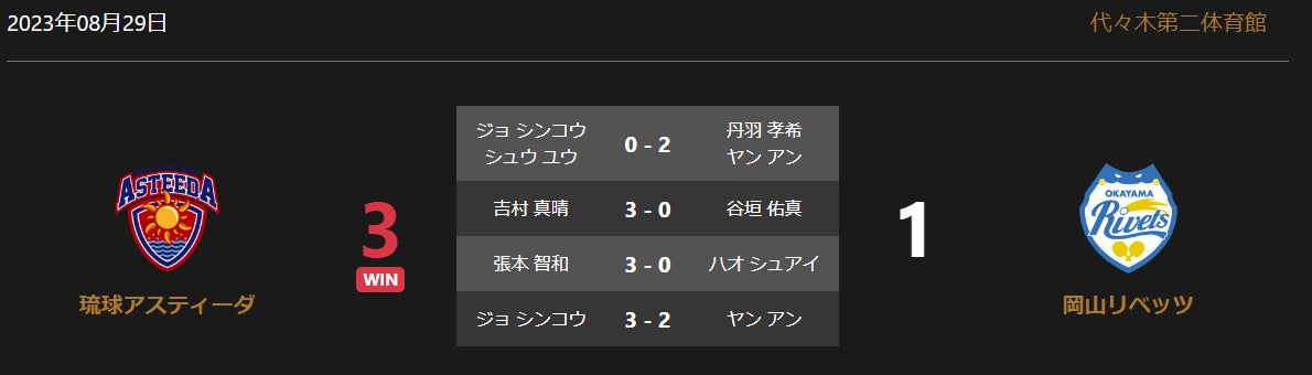 琉球アスティーダと岡山リベッツの試合は、3-1で九州アスティーダが勝利しました。