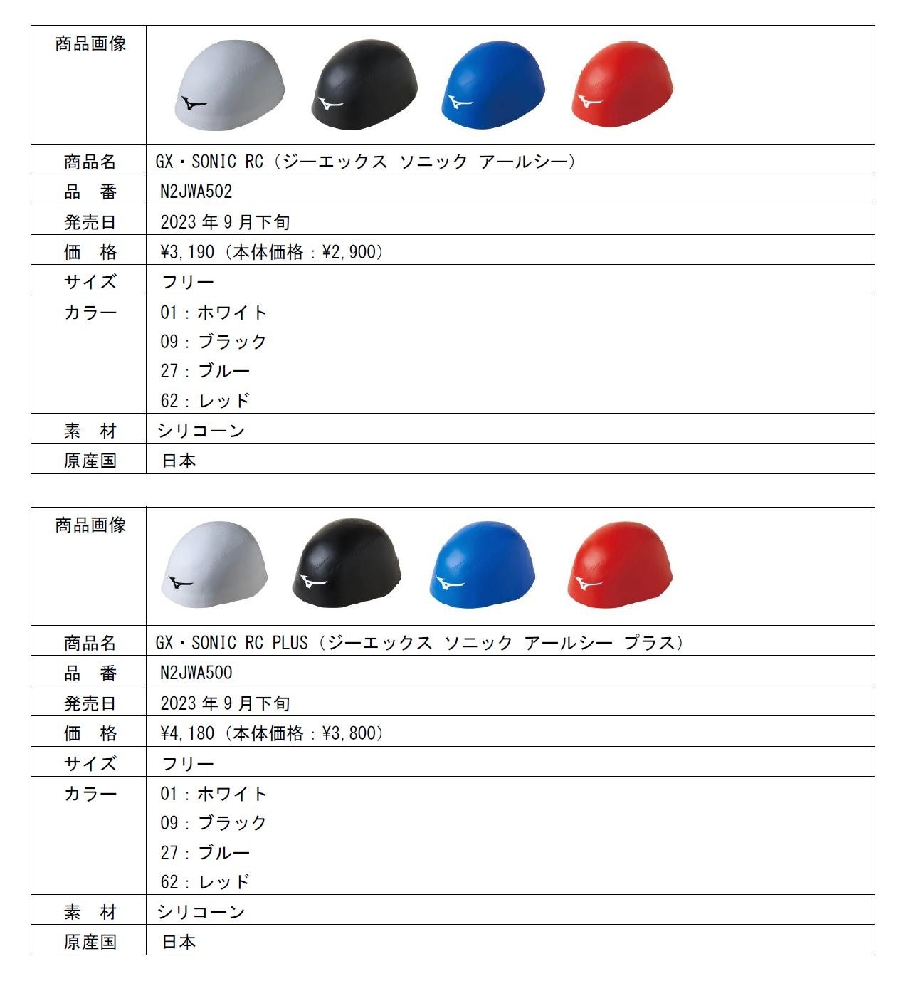 流水抵抗を約4.8%低減するスイミングキャップ「GX・SONIC RC(ジーエックス ソニック アールシー)」