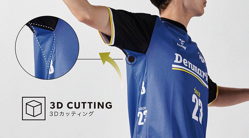 サポートチームや選手からヒアリングし、ハンドボールの動きを考えたパターンに。ハンドボールの動きに多い腕の上下運動がしやすいよう、シャツの脇部分に立体裁断を採用。投球動作時のストレスを軽減し、スムーズなプレーをサポートします。