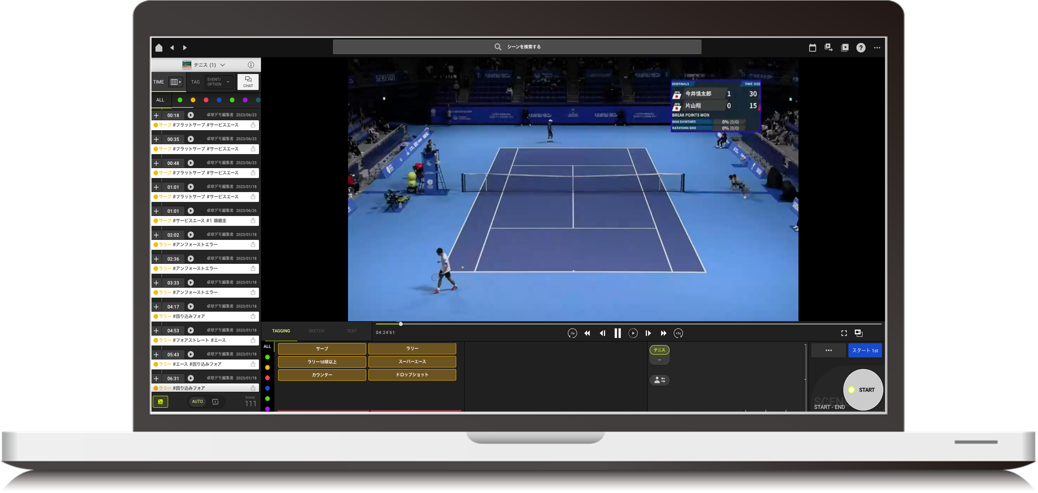 今回RUN.EDGEは、「映像をシーンで見る・活用する」ための「シーン再生技術」を活用した、映像分析プラットフォームを活用し、全日本テニス選手権のハイライト映像を作成します。
