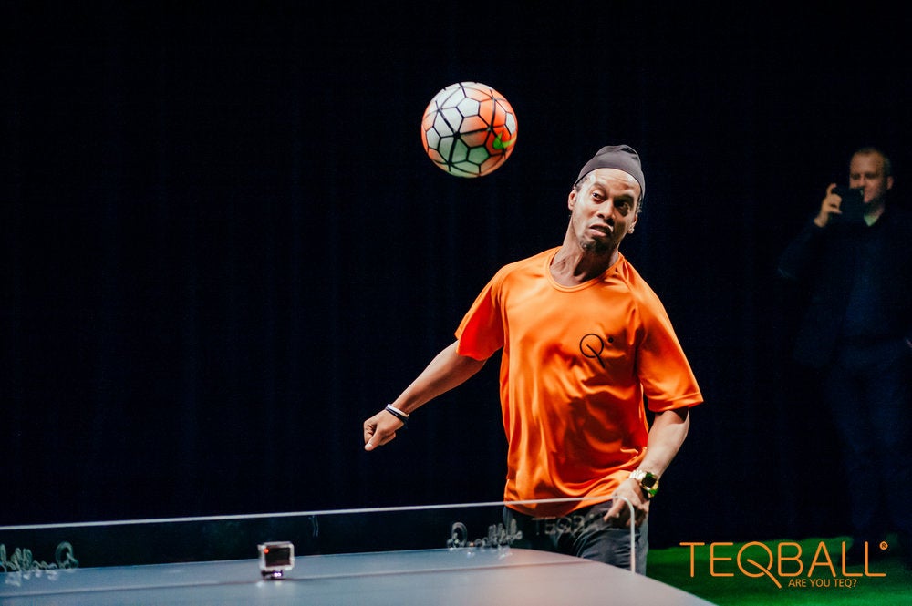 湾曲したテーブル上で、サッカーボールをリフティングしたりヘディングしたりして、相手コートへ向かって打ち合い得点を競う、いわば「サッカー」と「卓球」を組み合わせたスポーツです。