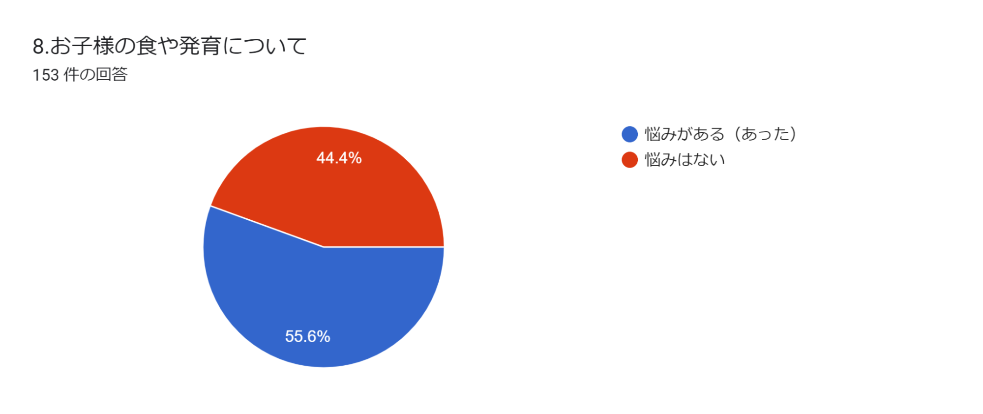 子供の食や発育について、悩みがある(あった)と答えた方が55.6%