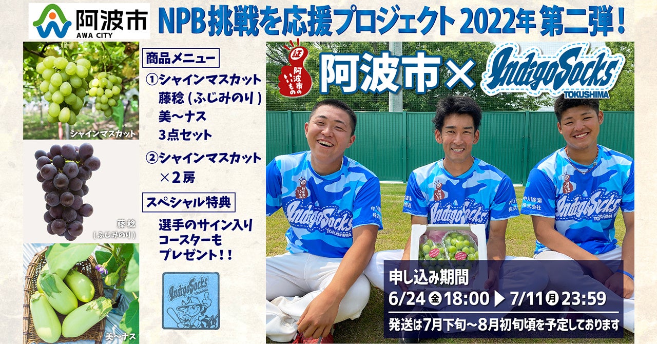 このたび、徳島インディゴソックス球団(株式会社パブリック・ベースボールクラブ徳島、代表取締役:南 啓介)では、昨年に続き、「NPB挑戦を応援プロジェクト」を実施することとなりましたので、お知らせ致します。