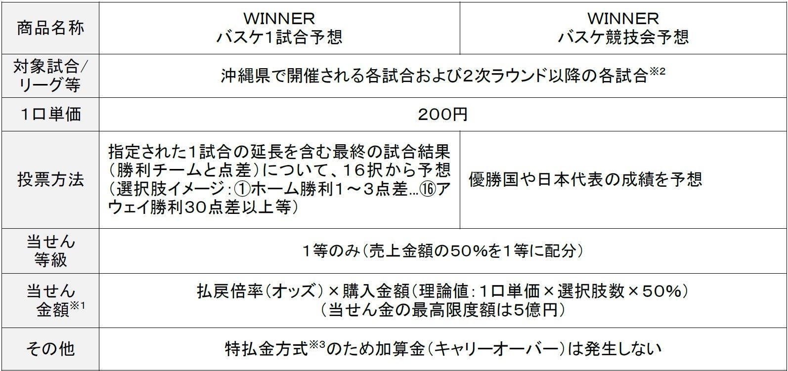 バスケットボールワールドカップを対象とした「WINNER」販売概要
