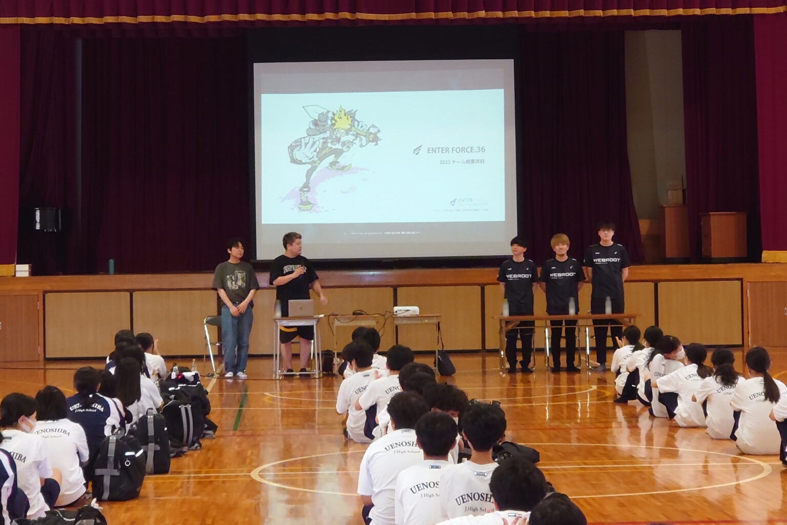 大阪府堺市内の公立学校へ訪問し、eスポーツに関心のある学生に向けて、プロ選手とチーム運営スタッフが職業講話を実施しています。eスポーツという用語の説明からプロチームの全容や活動内容まで、学生一人一人に真摯に向き合い、学校教育や地域活動活性化の支援となれるよう取り組んでおります。