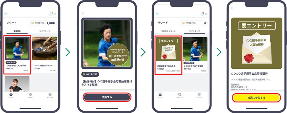 お礼は例えば、選手のデジタル壁紙やweb3技術を活用したデジタル所有証明書、応援グッズやイベント参加権など、内容はクラブによって異なります。