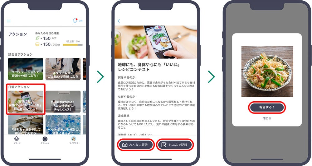 (2)日常アクション一覧から自分に合う行動を見つけて、日常的に行動してみてアプリで記録・共有
