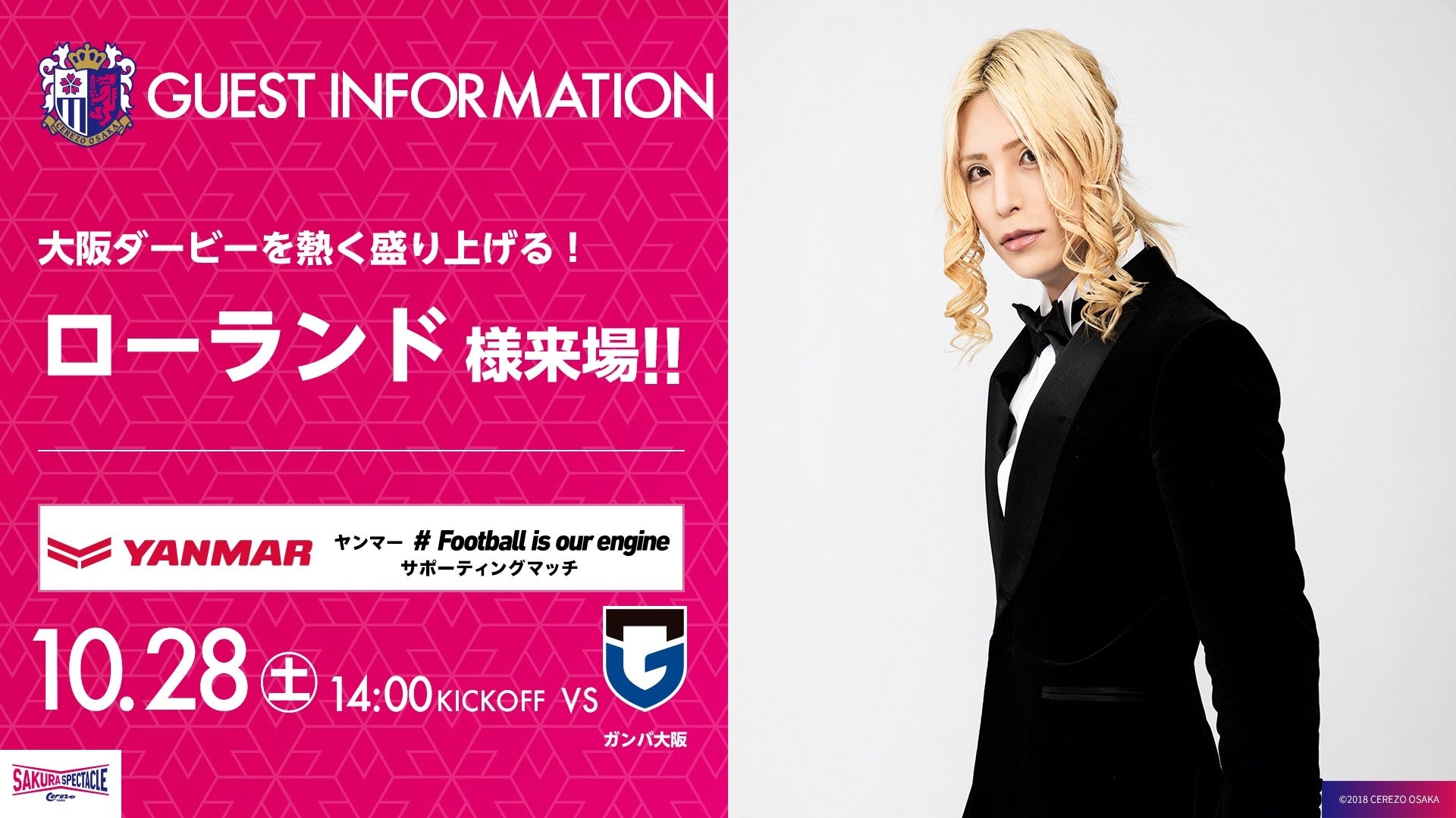10/28(土)G大阪戦をセレッソ大阪トップパートナーのヤンマーホールディングス株式会社によるヤンマー #Football is our engine サポーティングマッチとして実施し、ゲストとしてセレッソ大阪公認セレ男のローランド様のご来場が決定いたしました!