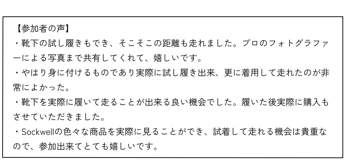 ・イベント詳細ページ:https://sockwell.jp/blogs/sockwell-run-crew/vol-2