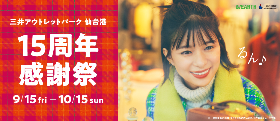 三井ショッピングパーク仙台港では、15周年を記念して「15」にちなんだ特典や限定商品、ノベルティプレゼントなど、おトクがいっぱいの感謝祭を開催します。