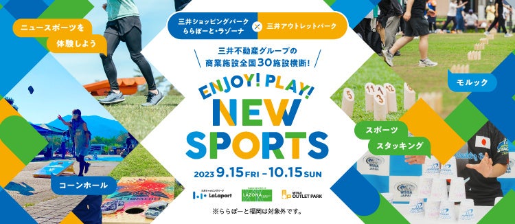 開催期間は、2023年9月15日(金)~10月15日(日)の1ヶ月間。期間中は、各施設で話題のニュースポーツを体験できるイベントを開催するほか、豪華賞品が当たるプレゼントキャンペーンなどを実施します。