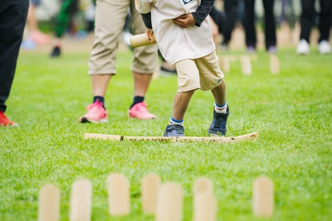 モルックという木の棒を投げてスキットルという数字入りの木の棒を倒し、得点を取っていきます。2チーム以上でプレイし、先に50点ピッタリになった方が勝ちとなります。