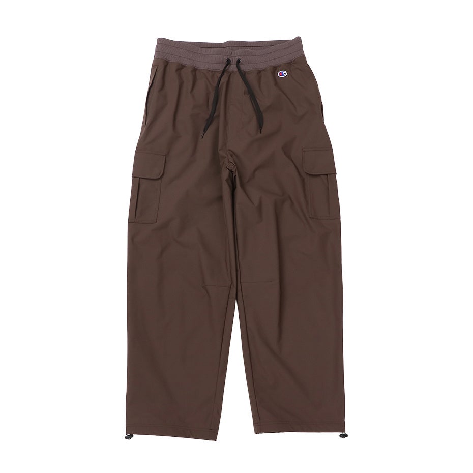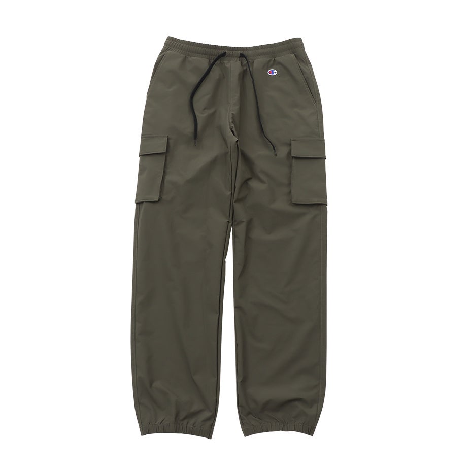 商品特長:ストレッチ性、撥水性に優れ、軽さと柔らかさが特長の機能素材「FLEXIBLE STRETCH CLOTH」を使用したワイドシルエットのロングパンツです。裏側がディンプル構造になっているので、汗をかいても肌離れが良く快適な着心地です。裾は風の侵入を防ぐリブ仕様。両サイドにカーゴポケット付き。カーゴポケットにはCロゴとChampion(チャンピオン)のコンビネーションロゴを組み合わせたワッペンが付きます。