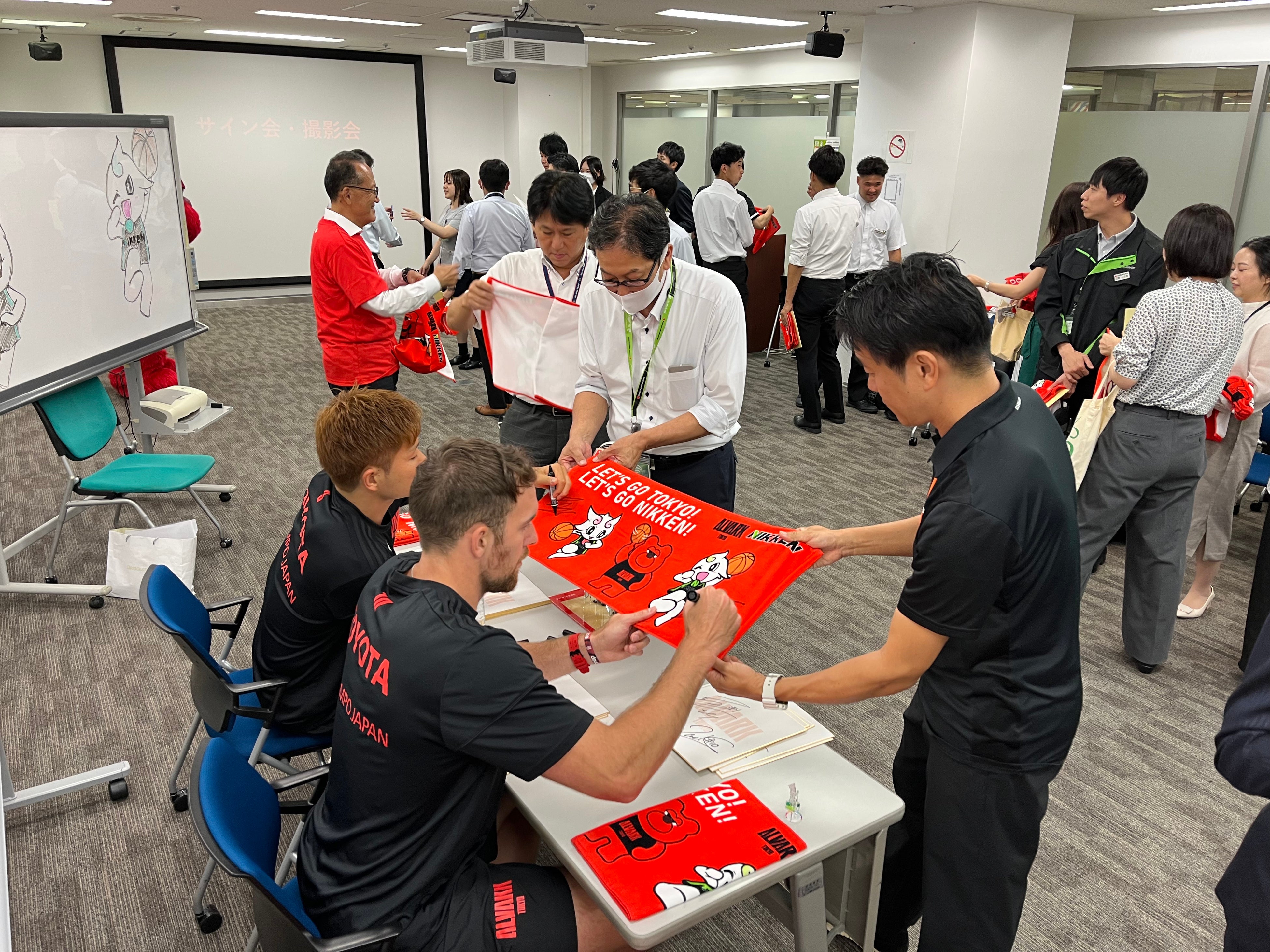 株式会社レンタルのニッケン(本社:東京都港区、社長:齊藤良幸)は、2023年8月9日に男子プロバスケットボール Bリーグ アルバルク東京の#1岡本飛竜選手、#10ザック・バランスキー選手、マスコットキャラクターのルークを本社オフィスに迎え、役職員との交流イベントを実施いたしましたことをお知らせいたします。