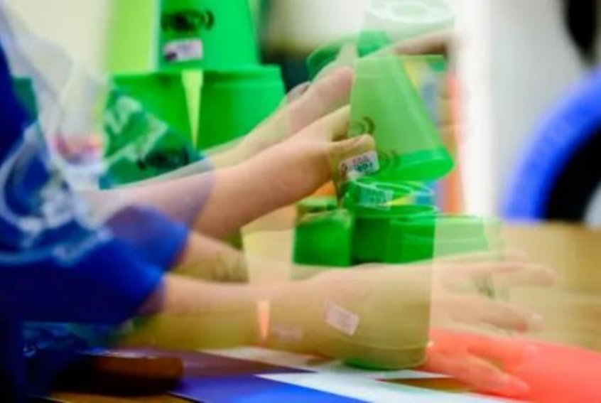 複数のプラスチック製カップを、決められた壁に積み上げたり崩したりして、1/1000秒単位でスピードを競います。年齢・体力・性別を問わない新しいスポーツです。