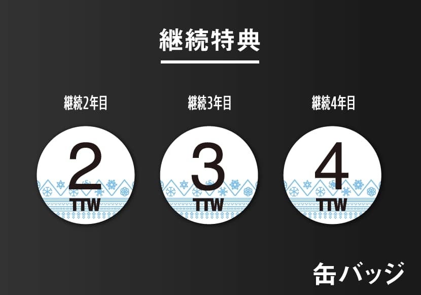2022-23シーズンから継続入会の方には、継続年数がデザインされた缶バッチヲプレゼントします。