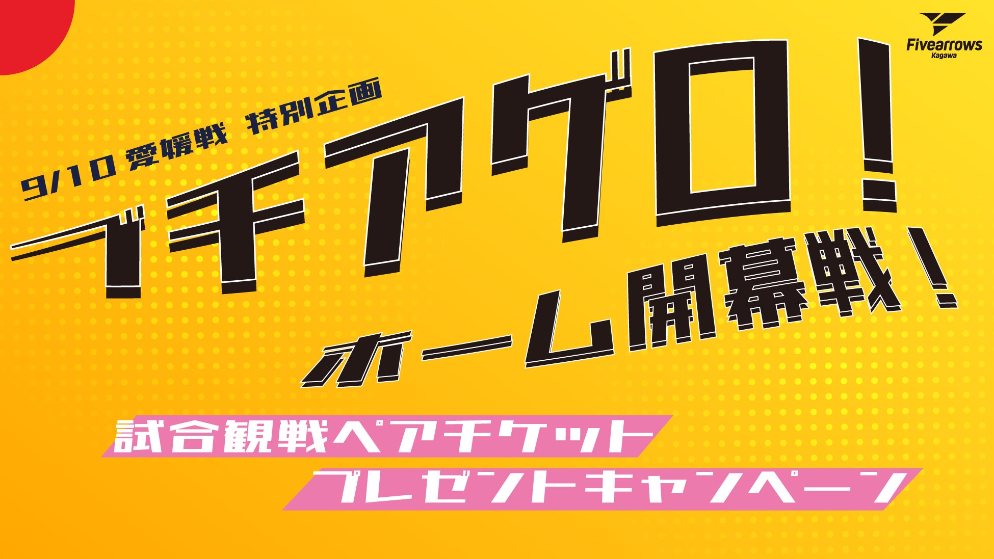 9/10(日)プレシーズンゲーム愛媛戦においてグッズを税込5,000円以上ご購入いただきますと、10/14-15に行われる「レギュラーシーズン ホーム開幕戦 vs徳島」の試合観戦ペアチケットを先着55名様にプレゼントいたします!