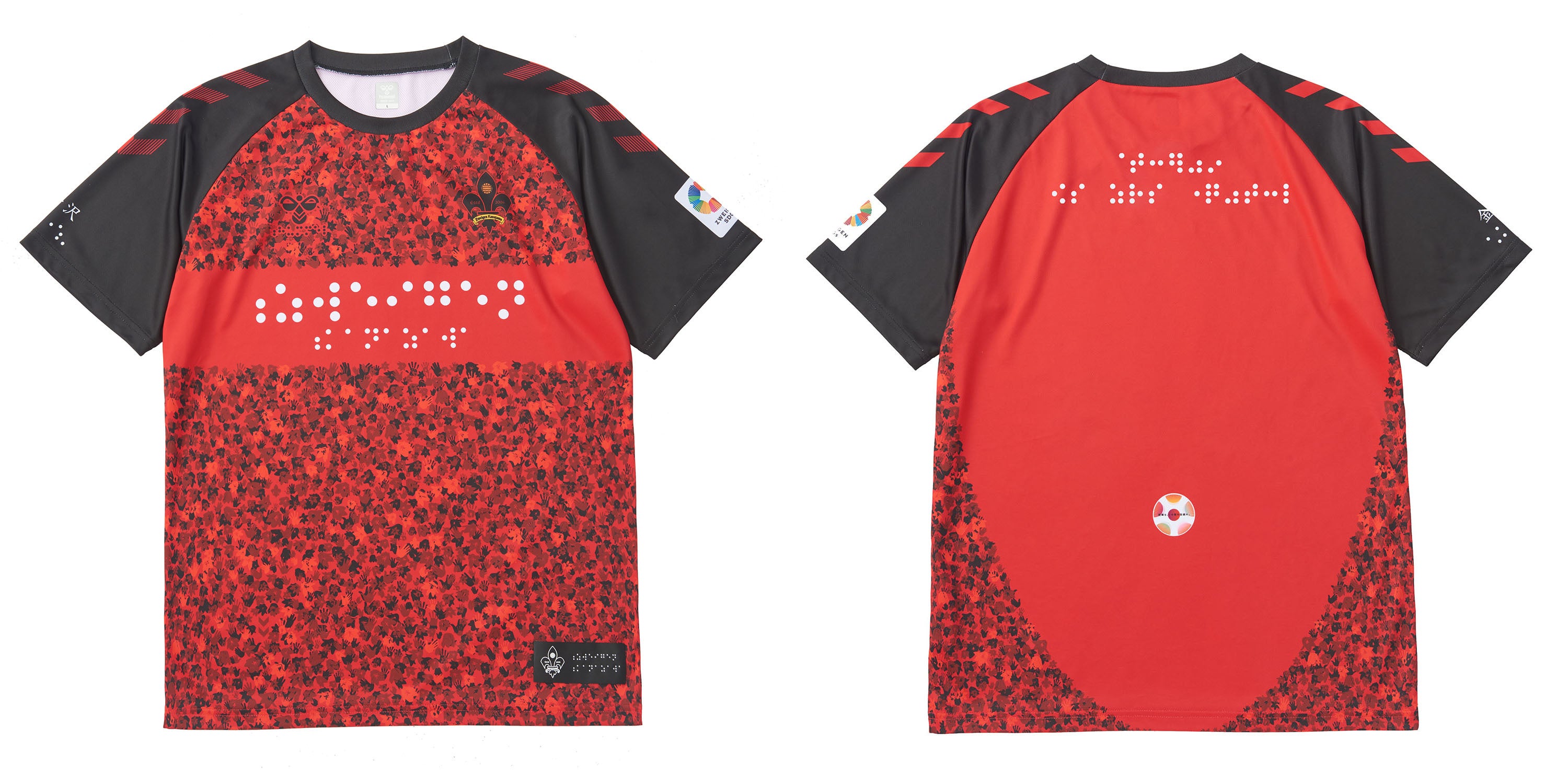本年は、「ツエーゲン金沢」と「視覚障がい者」の関係が深いこともあり、ヒュンメルとしても初めて「点字」を使用したシャツの製作に。