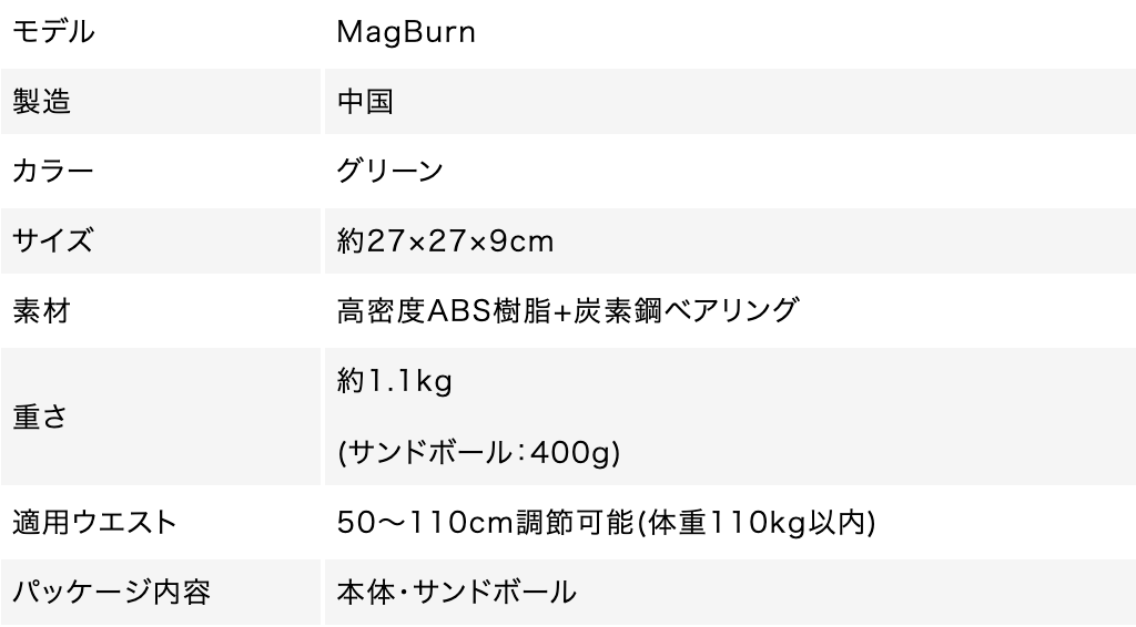また、MagBurnには重りが取り付けられており、腰を振ることでこの重りがレールに沿って回転します。この遠心力が腰回りのシェイプアップに働きかけます!
