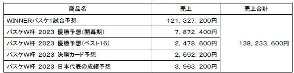 バスケットボールワールドカップを対象としたWINNERの売上金額