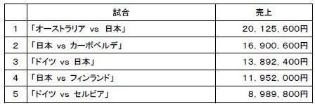 バスケットボールワールドカップを対象とした「WINNER」の売上・当せん金額の上位