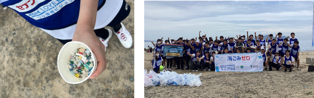 1袋1円が海の環境保全活動のために寄付される商品で、スポGOMI甲子園にピッタリのプレゼントになりました。今回、ごみの総量は少なめではありましたが、マイクロプラスチックごみという普段気が付きにくいごみに注目してくれたチームもあり、海洋ごみに対する意識を高める高校生たちは増えたのではないかと思います。