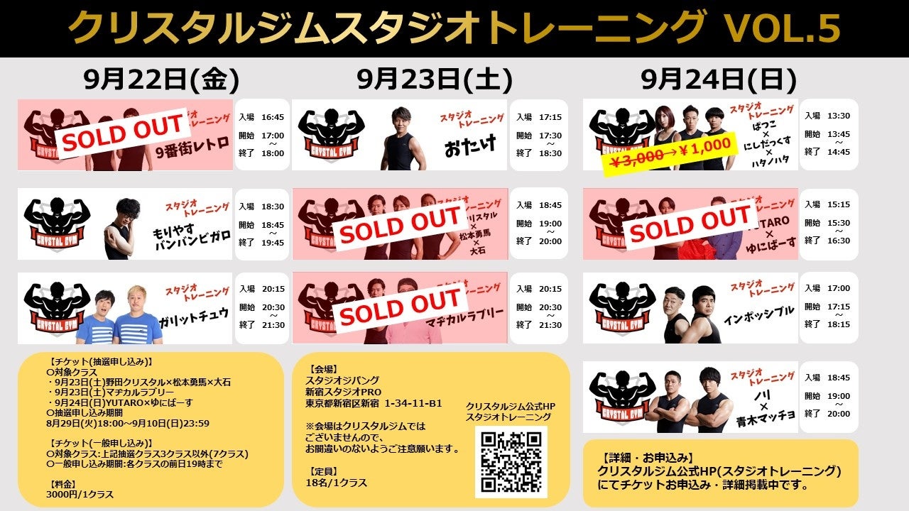 『クリスタルジムスタジオトレーニング VOL.5』開催概要