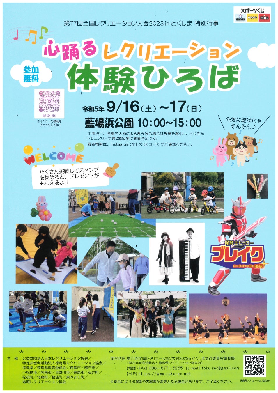 (公財)日本レクリエーション協会、(特非)徳島県レクリエーション協会、徳島県、徳島県教育委員会、