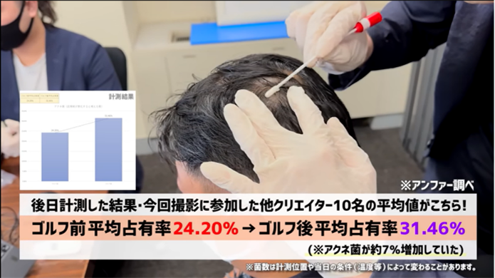 ゴルフプレーの前後でアクネ菌が約1.3倍に!?