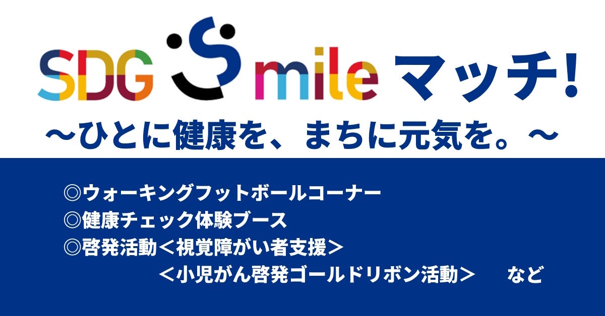 今年は、健康をテーマに、試合当日スタジアム場外を中心に、SDGsの取組みを体験できるブース出展を行います。また、各ブースにスタンプ台を置いてスタンプラリーを行いますので、ぜひ、多くの方のご来場をお待ちしております!